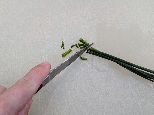 I place several stalks on a cutting board and chop into fine pieces. It is also possible
