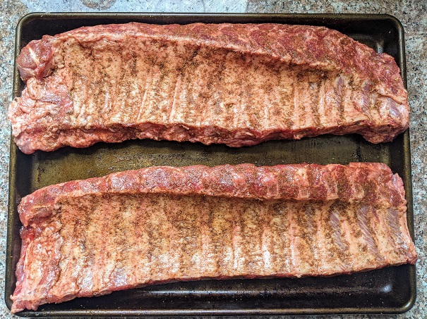 Note: This recipe requires 6 hours of heat on the ribs. Follow the 3-2-1 Rule: