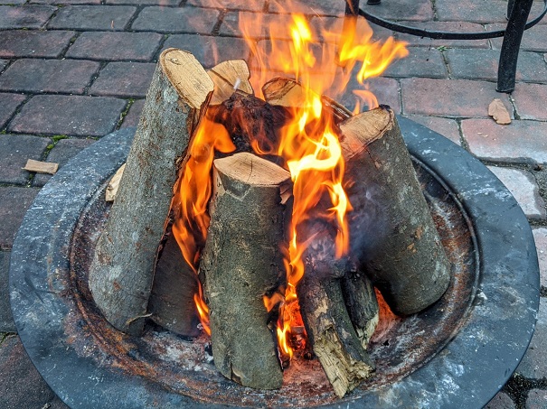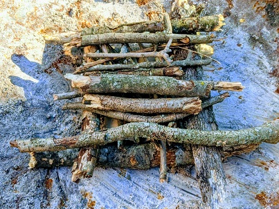 sticks will catch next and the larger wood pieces will catch as seen to the right.