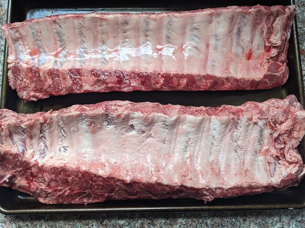 3. Place ribs onto rimmed baking sheet with the inside of the ribs facing up.