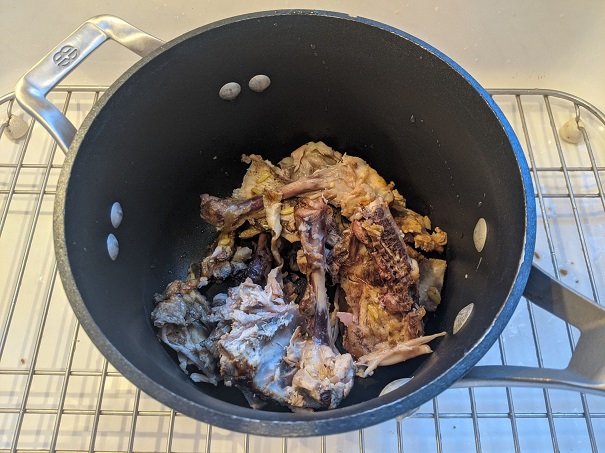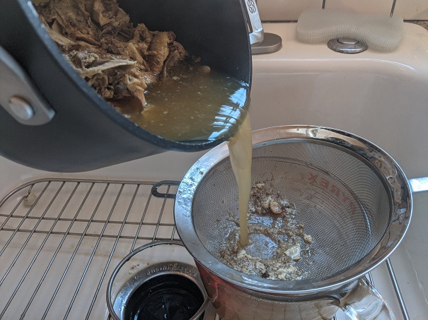 5. Drain water from cooking pot into bowl using a strainer to remove any bone parts.