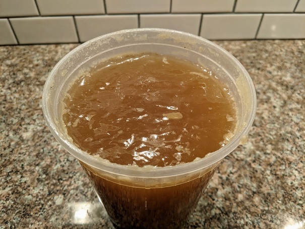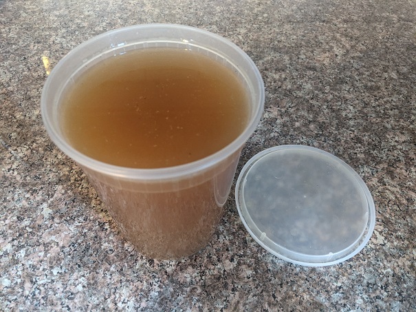 7. After the broth has cooled, the fat from the liquid will solidify on the top of the broth.